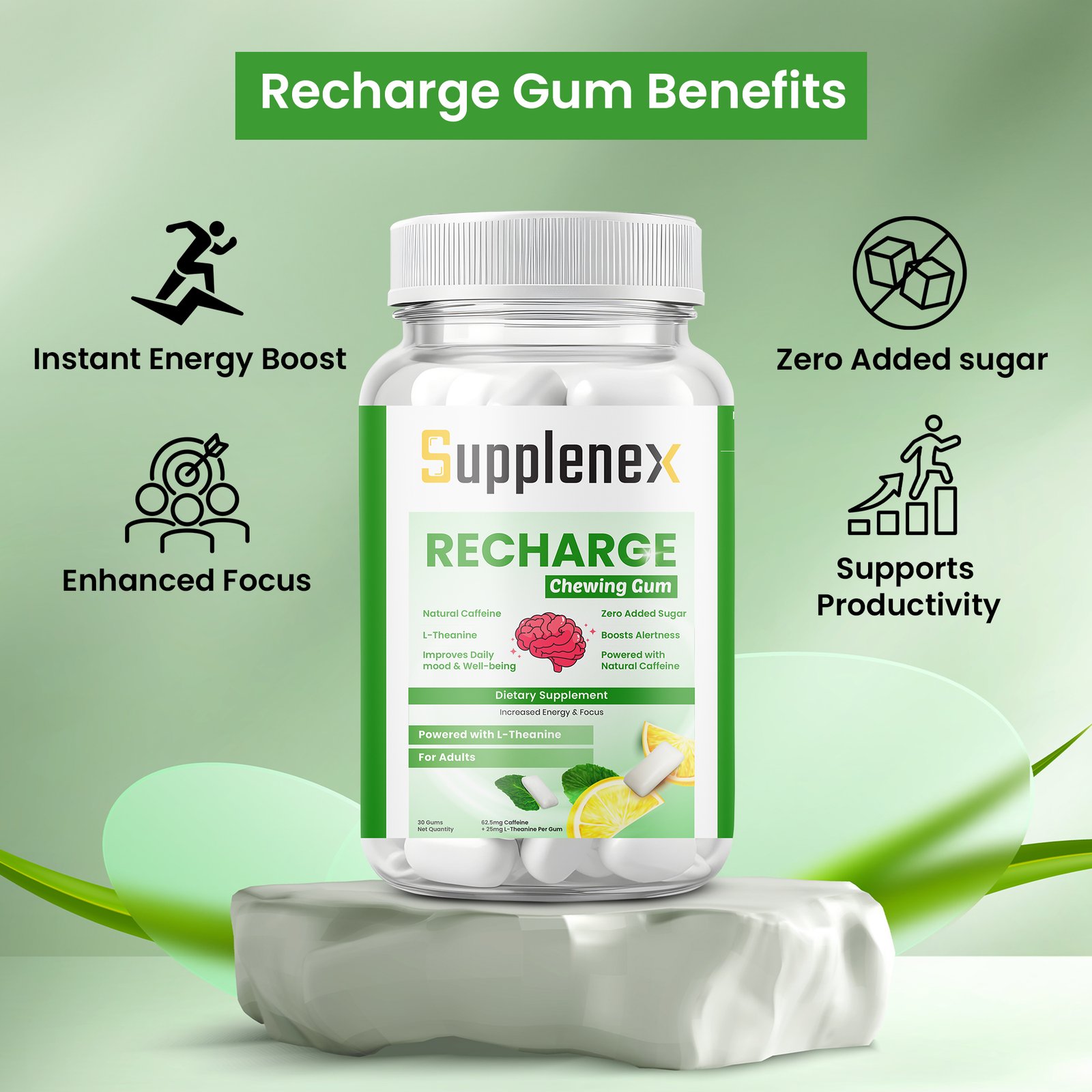 Perfect for on-the-go use, it comes in a compact 30-count pack—ideal for your bag, desk, or gym locker. Suitable for both men and women, Supplenex Caffeine Gum is your smart choice for daily brain support and productivity.